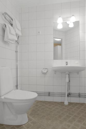 Varje morgon serveras en frukostbuffé i det ljusa och inbjudande frukostrummet.