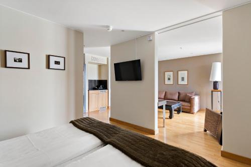 Alla rum på Maude's Hotel Solna Business Park har kylskåp, skrivbord och badrum med golvvärme. Vissa har även en rymlig sällskapsdel.