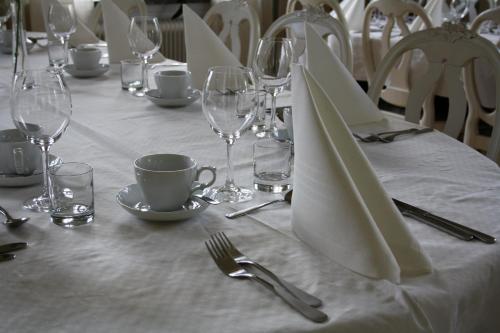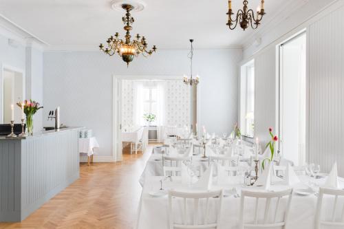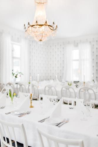 A breakfast buffet including local foods is served every morning at Stiftsgården. The breakfast room is housed in the former manor building which dates back to 1802.