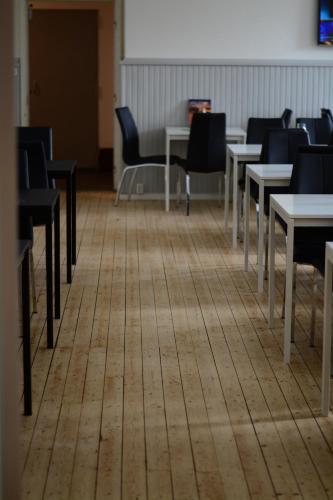 The simply furnished rooms at Alkoven Logi have shared bathroom facilities. Guests can rent bed linen and towels at the reception or choose to bring their own.