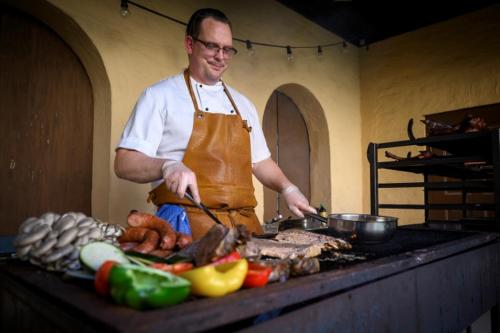 Restaurangen serverar svenska rätter baserade på ekologiska och lokalproducerade råvaror. Sigtunastiftelsens sommelier rekommenderar gärna lämpliga viner till maten. I Rosengården, spegelbaren eller i Rosengårdssalen kan du koppla av med något gott att dricka.