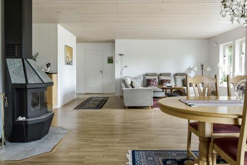 Situated in Bolmsö and only 45 km from Bruno Mathsson Center, Holiday house in Holminge with panoramic views of Lake Bolmen features accommodation with lake views, free WiFi and free private parking. This holiday home offers a garden. The property is non-smoking and is set 47 km from High Chaparall. The spacious holiday home has 3 bedrooms, a TV, a fully equipped kitchen with a dishwasher and an oven, a washing machine, and 2 bathrooms with a shower. The accommodation offers a fireplace. The nearest airport is Växjö Airport, 71 km from the holiday home.