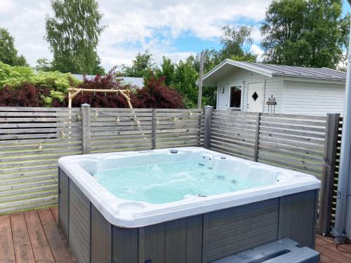 Located in Ljungby in the Kronoberg region, Luxury holiday home in Tallbacken with lake views over Bolmen provides accommodation with free WiFi and free private parking. This holiday home features a garden. The spacious holiday home with a terrace and lake views features 3 bedrooms, a living room, a TV, an equipped kitchen with a dishwasher and an oven, and 2 bathrooms with a shower. The accommodation offers a fireplace. The nearest airport is Växjö Airport, 67 km from the holiday home.