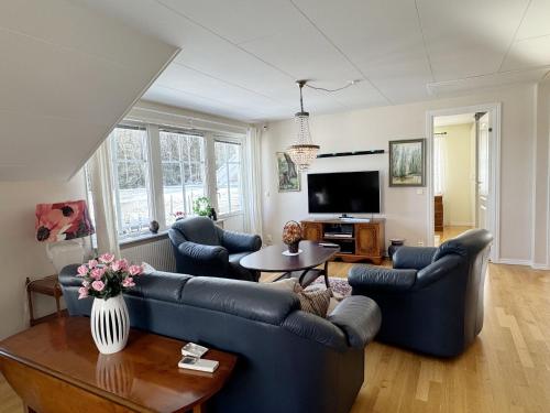 Boasting air-conditioned accommodation with a balcony, Exclusive villa with sea view in Uddevalla is situated in Uddevalla. This property offers access to a terrace, free private parking and free WiFi. The property is non-smoking and is set 1.3 km from Ormeskratt Beach. The spacious holiday home has 4 bedrooms, a TV, a fully equipped kitchen with a dishwasher and an oven, a washing machine, and 2 bathrooms with a bath. The accommodation offers a fireplace. Guests can relax in the garden at the property. Bohusläns Museum is 7.2 km from the holiday home, while Trollhättan railwaystation is 35 km from the property. The nearest airport is Trollhattan Airport, 38 km from Exclusive villa with sea view in Uddevalla.